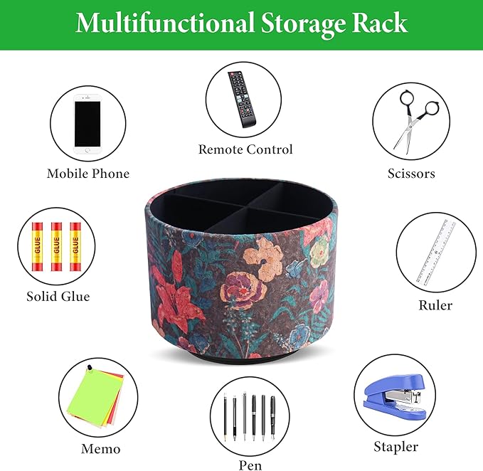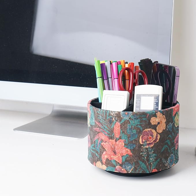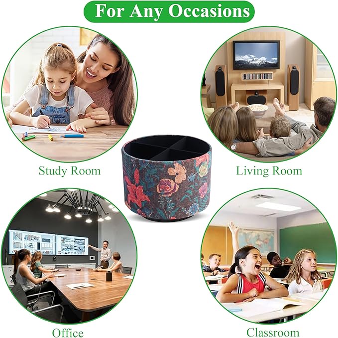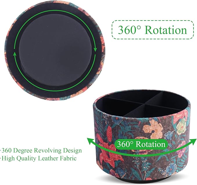- ✎360° Revolving Design: You can freely rotate the pen holder steadily left and right,unique spinning base design allows easy access to items from any directions.The non-slip pads on the bottom keep it stay in place when rotating.