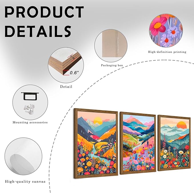 - Premium Canvas and Wood Frame : Crafted for lasting quality, each print is on durable canvas showcasing vibrant colors and fine details. Encased in sturdy solid wood frames, carefully sanded and finished for a classic, smooth look, this combination ensures enduring durability and an elevated aesthetic presentation