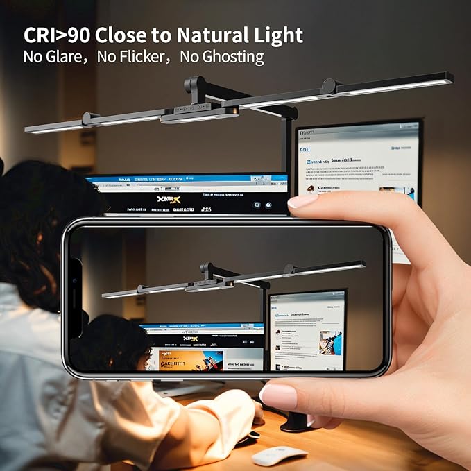 - 【Eye-Caring & Flicker-Free Lighting】 It features a specialized 45° angled design that projects gentle, uniform light onto your workspace and keyboard while avoiding glare on screens and eyes. Combined with high color rendering (CRI>90) and flicker-free technology, it effectively minimizes eye strain.